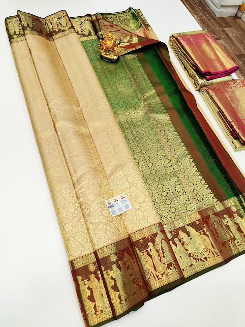Kanjivaram Pure Wedding Silk Saree Off White Color w/ Blouse