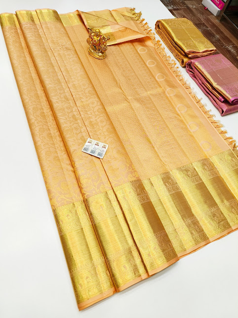 Kanjivaram Pure Wedding Silk Saree Sandal Color w/ Blouse