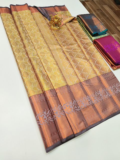 Kanjivaram Semi Silk Saree Cream Color w/ Blouse