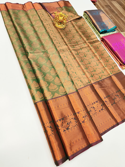 Kanjivaram Semi Silk Saree Green Color w/ Blouse