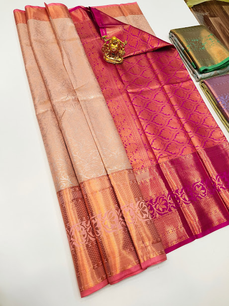 Kanjivaram Semi Silk Saree Light Peach Color w/ Blouse