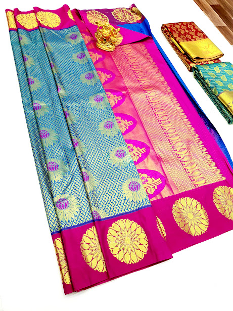 Kanjivaram Semi Silk Saree Sky Blue Color w/ Blouse