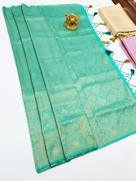 Kanjivaram Semi Silk Sarees (Ink Blue, Green, Gold White, Sky Blue) Colors
