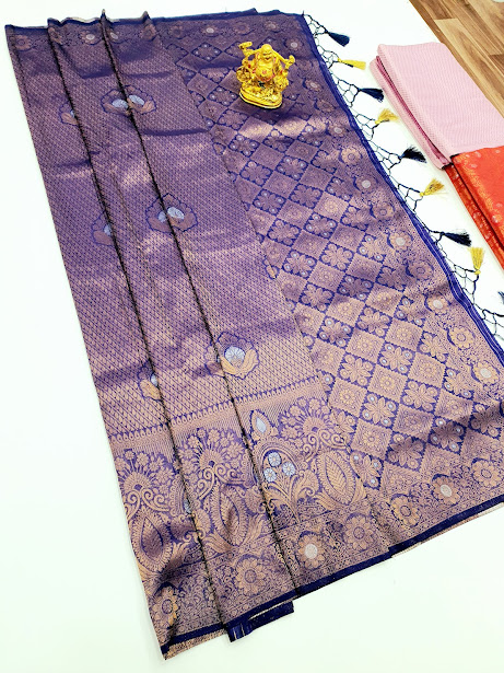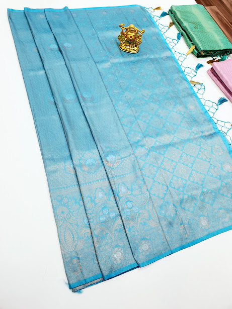 Specification: Kanjivaram Semi Silk Sarees (Ink Blue, Green, Gold White, Sky Blue) Colors