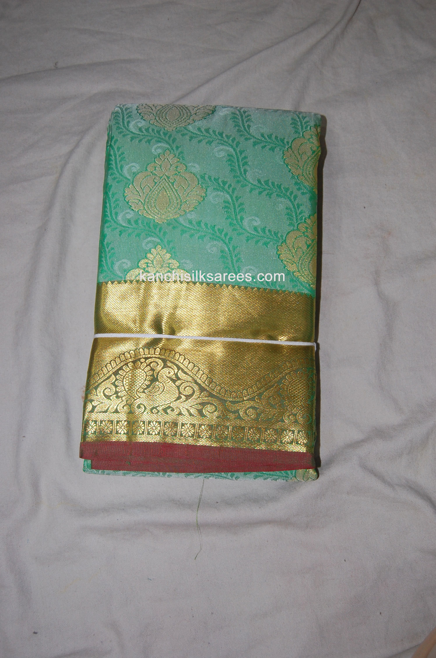 Kanjivaram Soft Silk Sarees Flower and Peacock Design Acapulco Green w/ Gold Zari Color