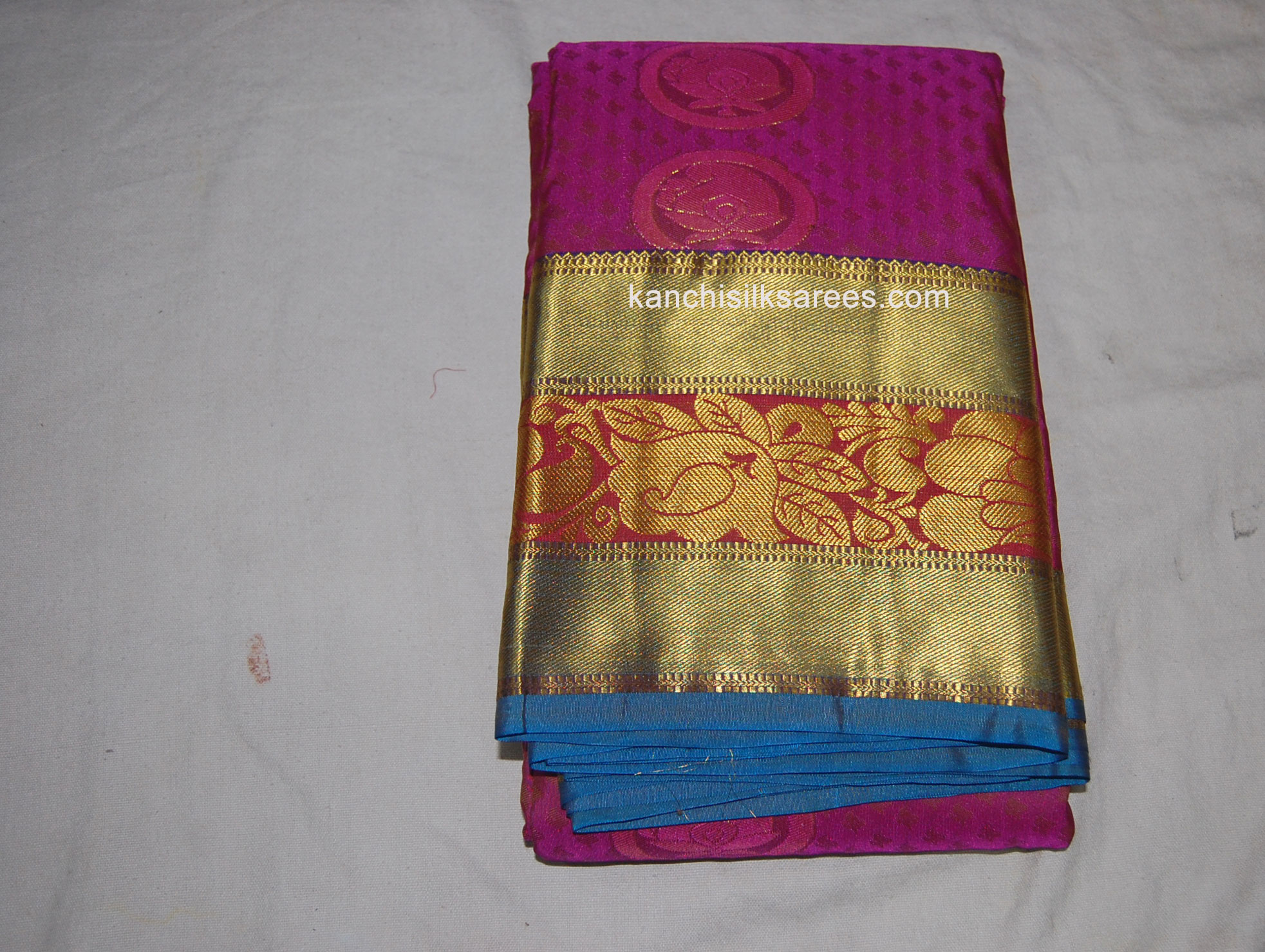 Kanjivaram Soft Silk Sarees Mango Design Magenta w/ Dark Cerulean Blue Color