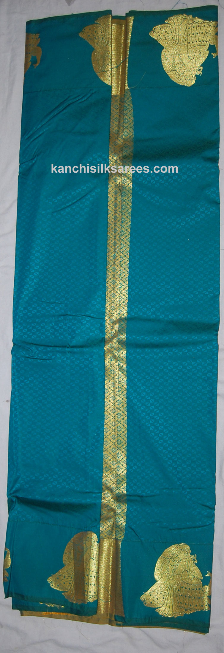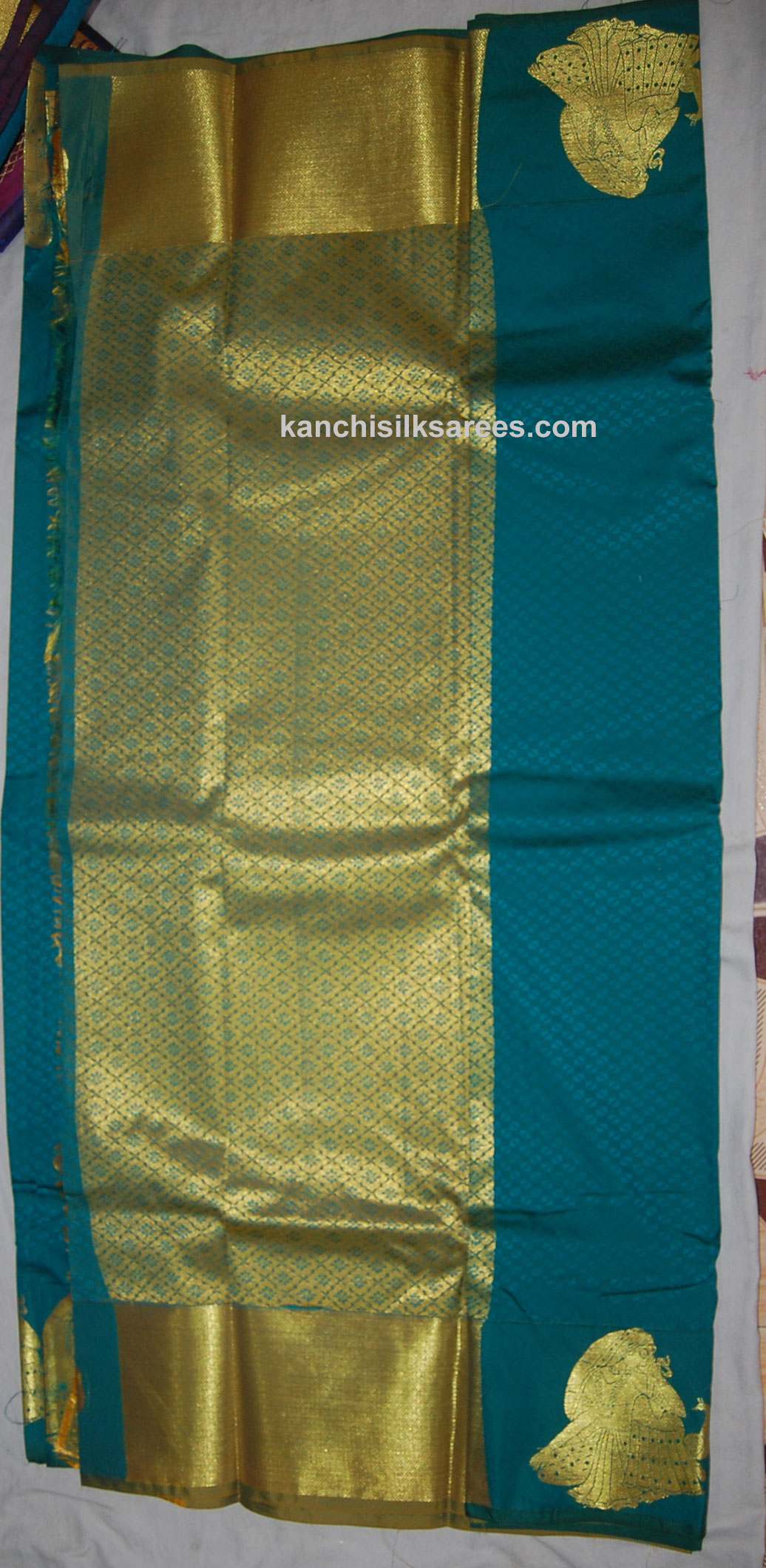 Kanjivaram Soft Silk Sarees Peacock and Girls Design Blue Lagoon Color