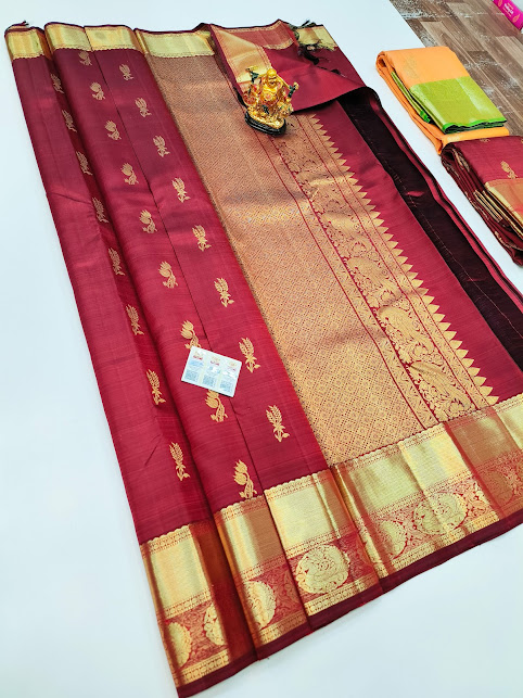 Latest and Trendy Design Pure Kanjivaram Fancy Silk Saree Apple Red Color w/ Blouse