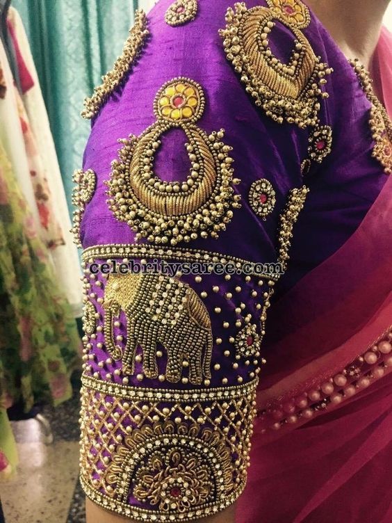 Specification: Latest Beautiful Elephant Kundan and Thread Work Designer Blouse Purple Color
