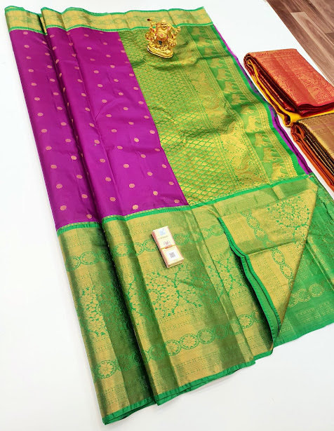 Latest Big Border Design Pure Soft Silks Saree Magenta w/ Green Color