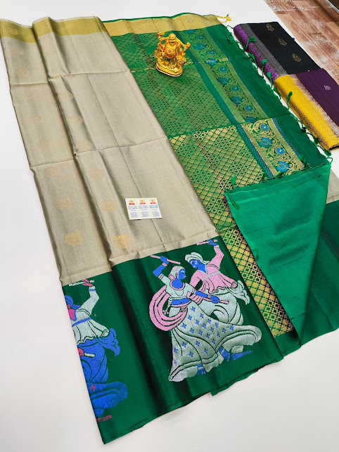 Latest Dancing Design Pure Soft Silk Saree Gray Color w/ Blouse