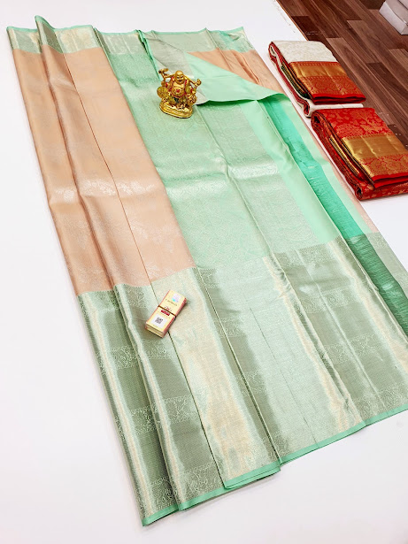 Latest Design Big Border Kanjivaram Pure Wedding Silk Saree Cream White Color w/ Blouse