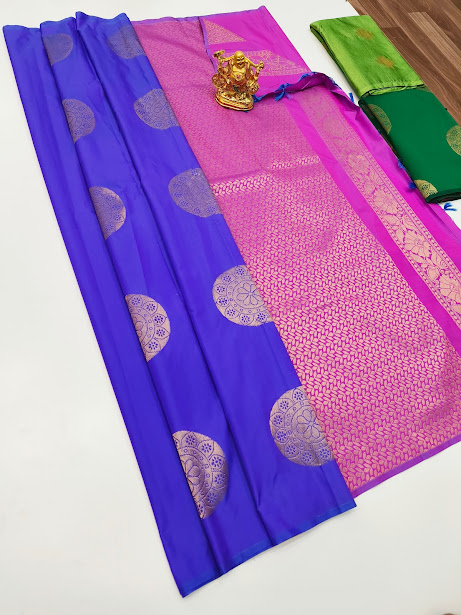 Latest Design Butta Mphoss Saree Blue Color w/ Blouse