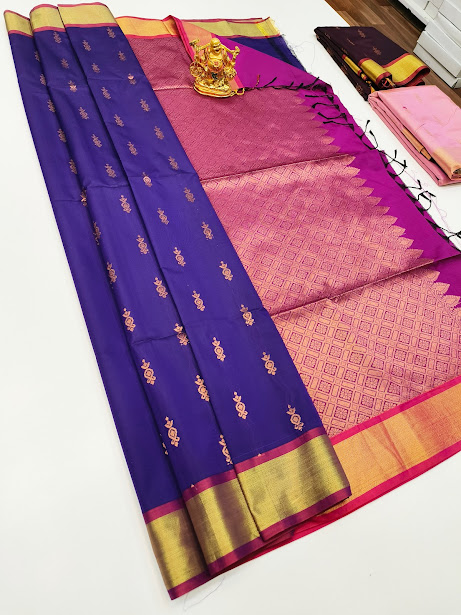 Latest Design Butta Mphoss Saree Ink Blue Color w/ Blouse