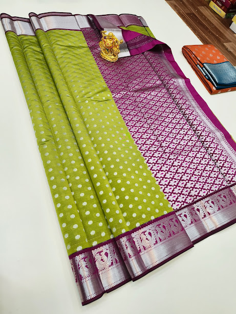 Latest Design High Fancy Kanjivaram Silk Saree Mix Pista Green Color