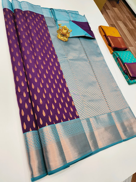 Latest Design High Fancy Kanjivaram Silk Saree Mix Purple Color w/ Blouse