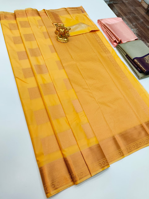 Latest Design High Fancy Kanjivaram Silk Saree Mix Yellow Color w/ Blouse