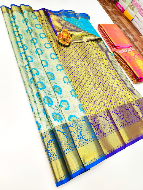 Latest Design Kanchi Semi Silk Saree Off White Color w/ Blouse