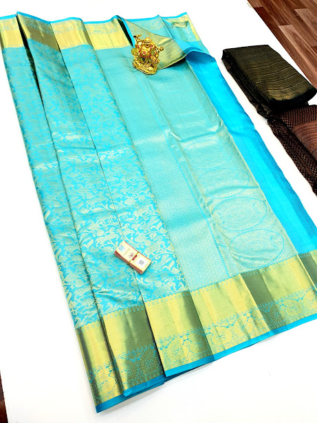 Latest Design Kanjivaram Pure Silk Sarees Sky Blue Color