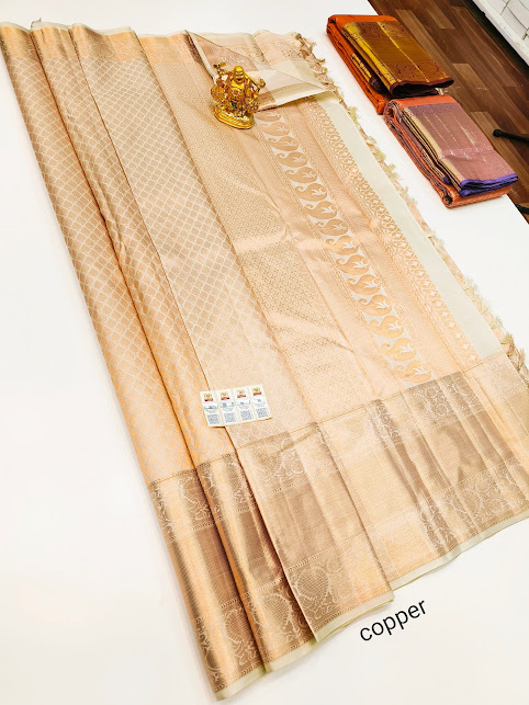 Latest Design Kanjivaram Pure Wedding Bridal Silk Saree Off White Color w/ Blouse