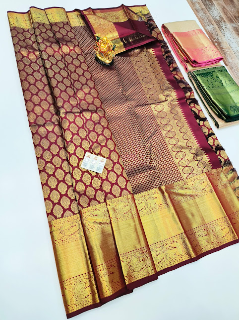 Latest Design Kanjivaram Pure Wedding Silk Saree Kumkum Red Color w/ Blouse