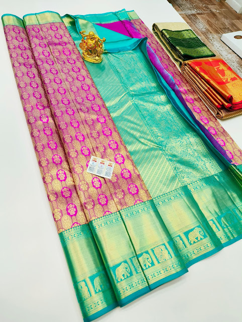 Latest Design Kanjivaram Pure Wedding Silk Saree Magenta Color w/ Blouse