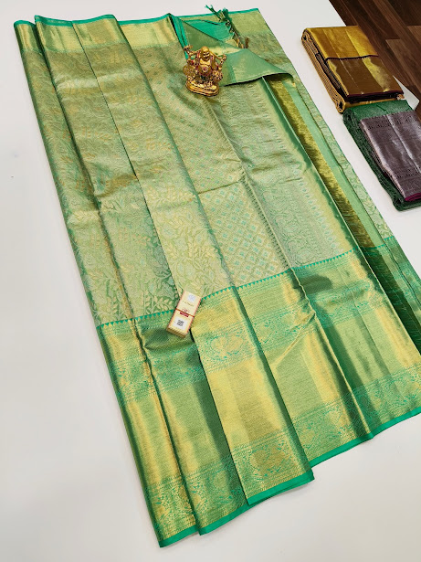 Latest Design Kanjivaram Pure Wedding Silk Saree Teal Green Color w/ Blouse