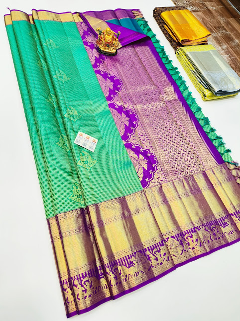 Latest Design Kanjivaram Pure Wedding Silk Saree Teal Green Color w/ Blouse