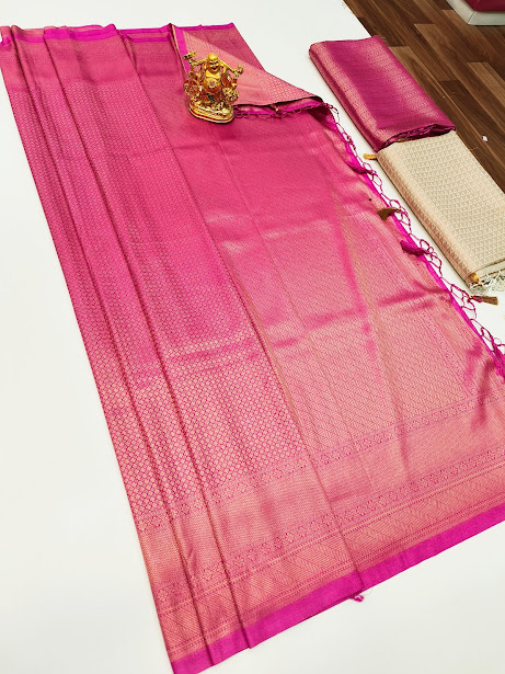 Latest Design Kanjivaram Semi Silk Saree Pink Color w/ Blouse