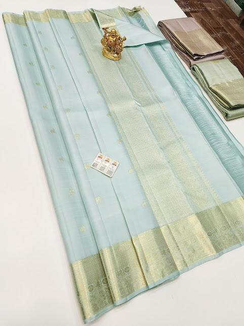 Latest Design Pure Kanjivaram Fancy Silk Saree Light Sky Blue Color w/ Blouse