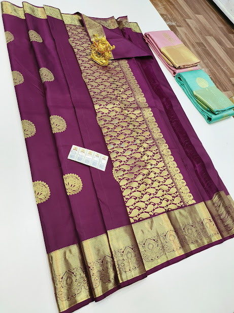 Latest Design Pure Kanjivaram Fancy Silk Saree Magenta Color w/ Blouse
