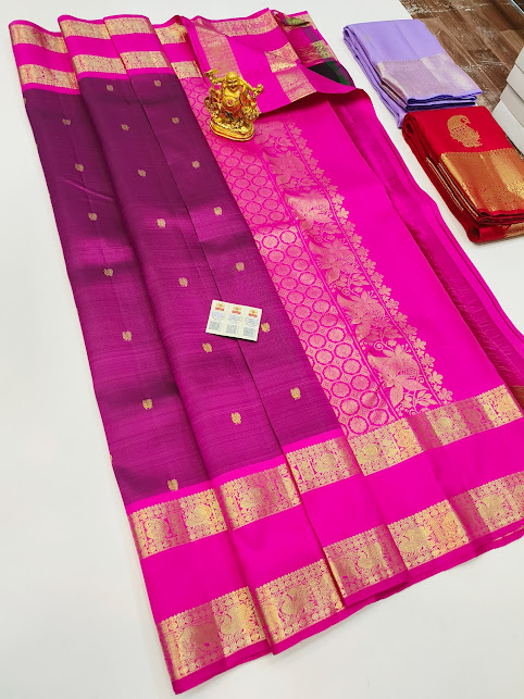 Latest Design Pure Kanjivaram Fancy Silk Saree Pink Color w/ Blouse