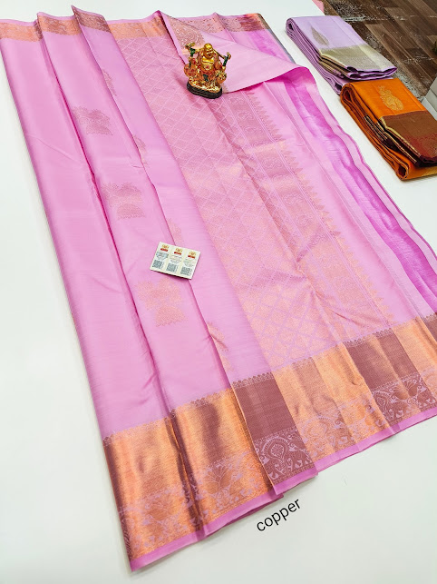 Latest Design Pure Kanjivaram Fancy Silk Saree Rose Color w/ Blouse