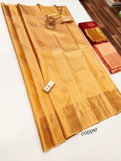 Latest Design Pure Kanjivaram Fancy Silk Saree Sandal Color w/ Blouse