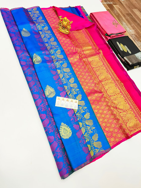 Latest Design Pure Kanjivaram Fancy Silk Saree Sky Blue Color W/ Blouse