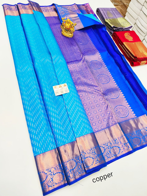 Latest Design Pure Kanjivaram Fancy Silk Saree Sky Blue Color w/ Blouse