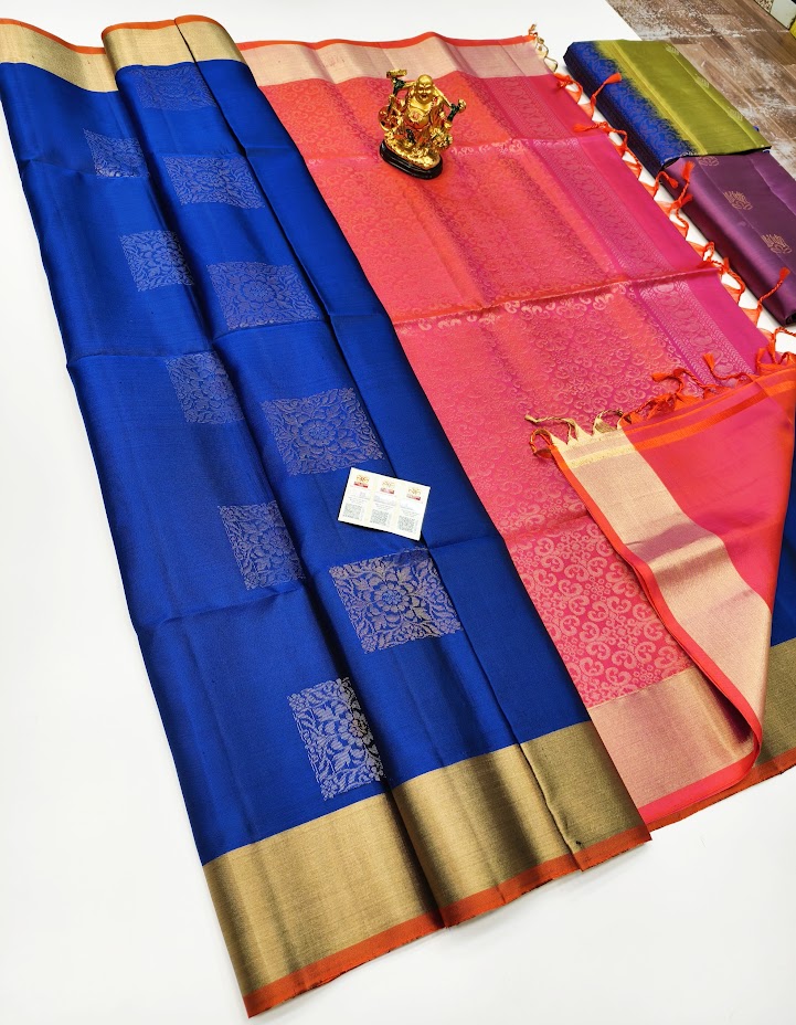 Latest Design Pure Soft Silk Saree Blue Color w/ Blouse