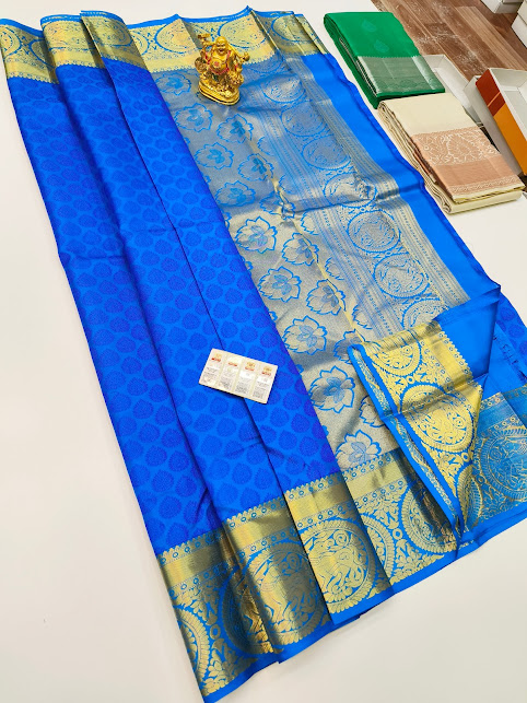 Latest Design Pure Soft Silk Saree Blue Color w/ Blouse