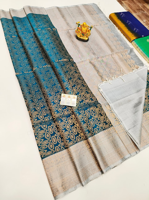 Latest Design Pure Soft Silk Saree Copper Blue Color w/ Blouse