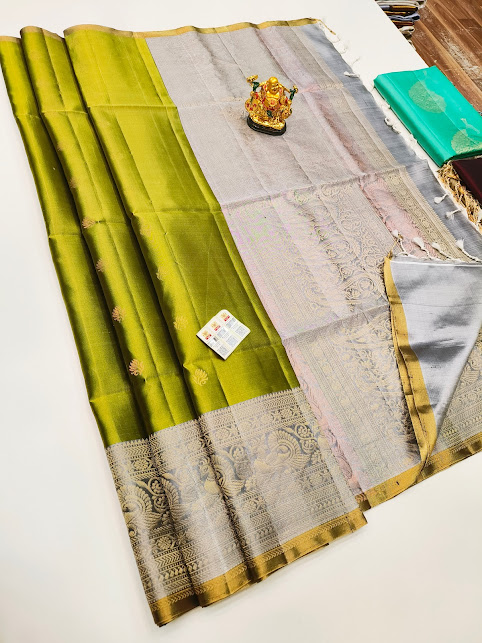 Latest Design Pure Soft Silk Saree Olive Green and Gray Color w/ Blouse