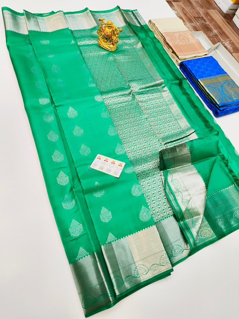 Latest Design Pure Soft Silk Saree Teal Green Color w/ Blouse