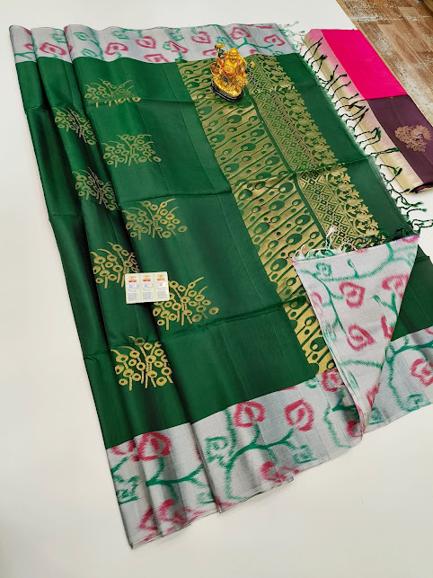 Latest Design Pure Soft Silks Saree Green Color w/ Blouse
