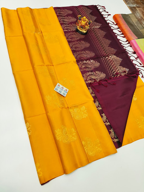 Latest Design Pure Soft Silks Saree Yellow Color w/ Blouse