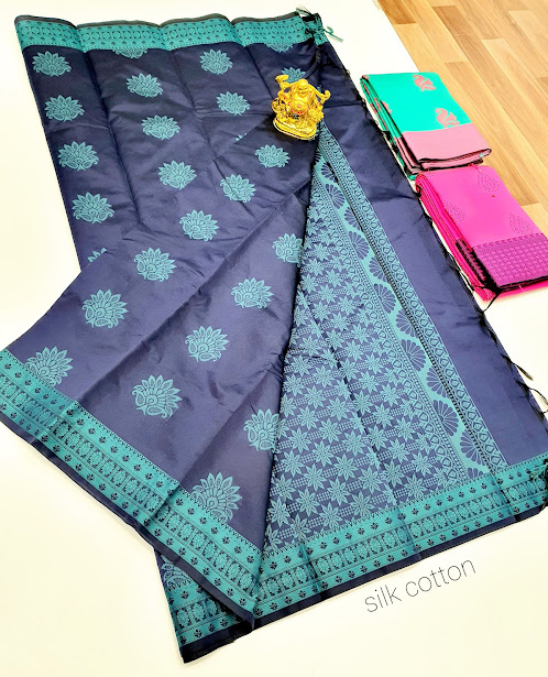 Latest Flower Design Butta Mphoss Saree Blue Color w/ Blouse