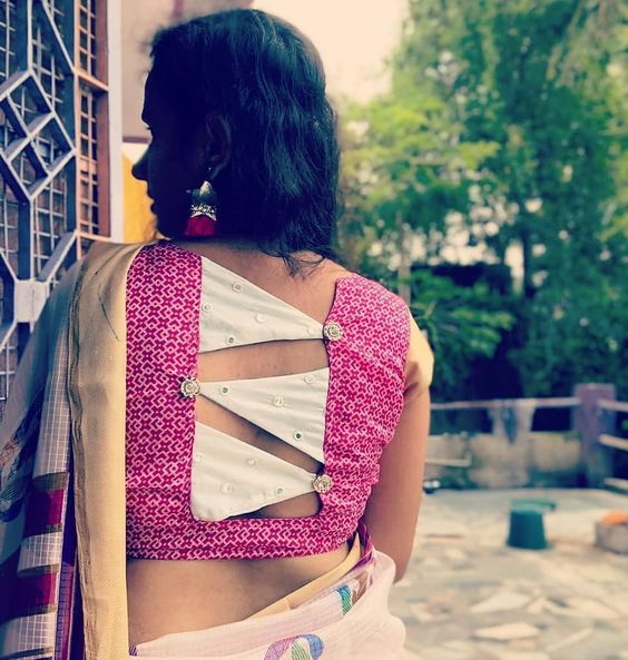 Specification: Latest Simple Patch Work Designer Blouse Pink and White Color