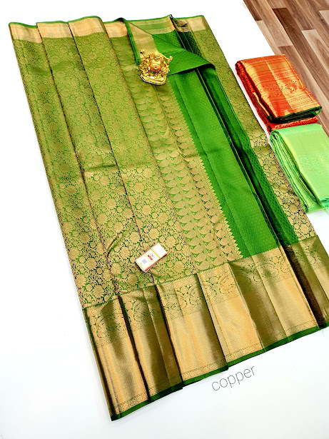 Latest & Trendy Annam and Flower Design Kanjivaram Pure Silk Sarees Parrot Green Color