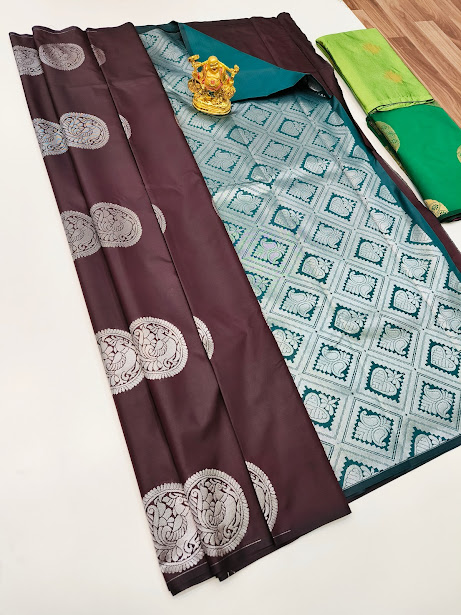Latest Trendy Coffee Color Butta Mphoss Saree w/ Blouse