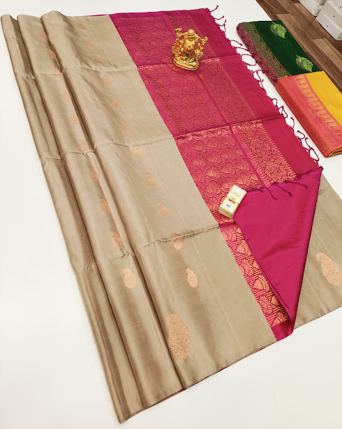 Latest Trendy Design Pure Soft Silk Saree Cream Color