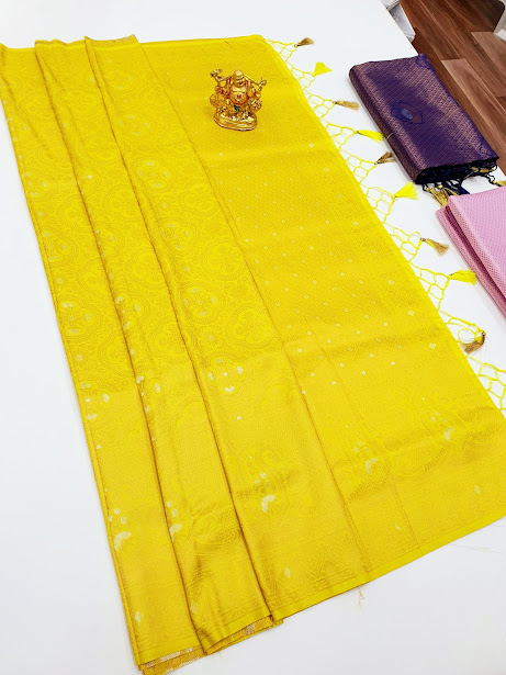 Latest & Trendy Kanjivaram Semi Silk Sarees Lime Yellow Color