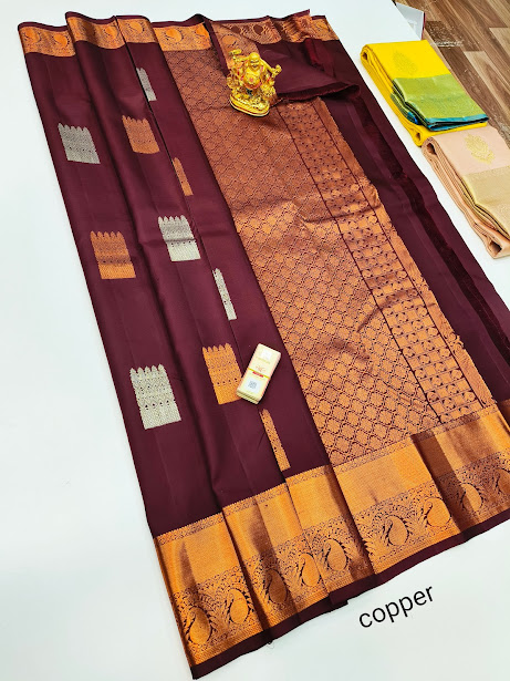 Light Weight Copper Zari Pure Kanjivaram Fancy Silk Saree Kumkum Red w/ Blouse
